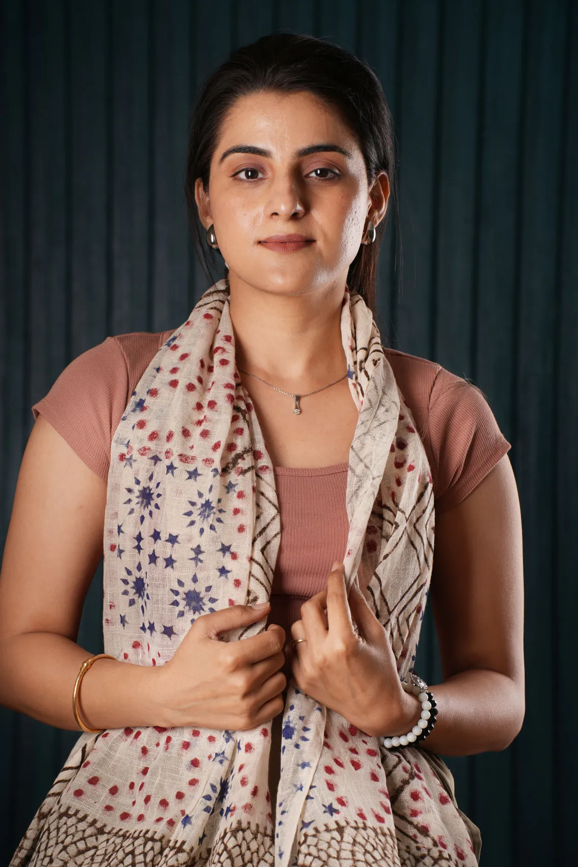 Organic Cotton Hand Block Printed Cotton Scarf #22
